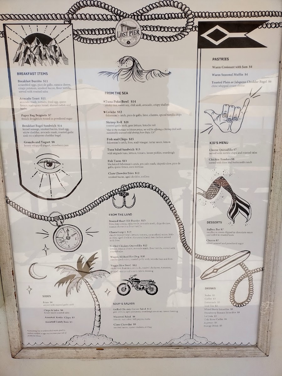 Welcome to Lost Pier Cafe, a hidden gem nestled right on the sandy shores of Laguna Beach. This delightful cafe offers a curated menu that captures the essence of coastal dining. Start your day with delicious pastries like a warm croissant or a seasonal muffin, each priced at just $5.00, perfect for the morning beach breeze.